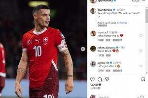 此役扎卡为瑞士首发出战,赛后他在社交媒体上晒出比赛照片,庆祝球队出线,配文:“2026年世界杯——我们来了!我已迫不及待。”