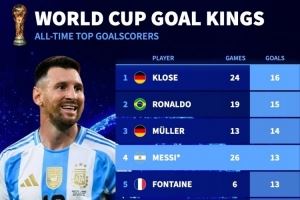 能否继续攀升?世界杯历史射手榜:梅西13球第四,姆巴佩12球